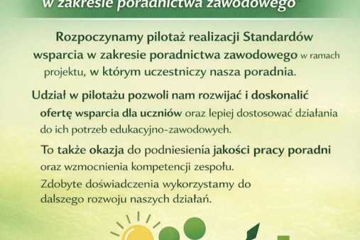 Udział w pilotażu to dla naszej Poradni szansa na rozwój i podniesienie jakości wsparcia udzielanego uczniom w obszarze wyborów edukacyjno-zawodowych.
